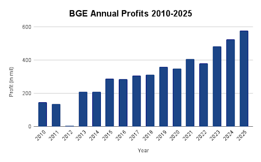 BGE profits have more than tripled from $147 million in 2010 to $527 million in 2024.